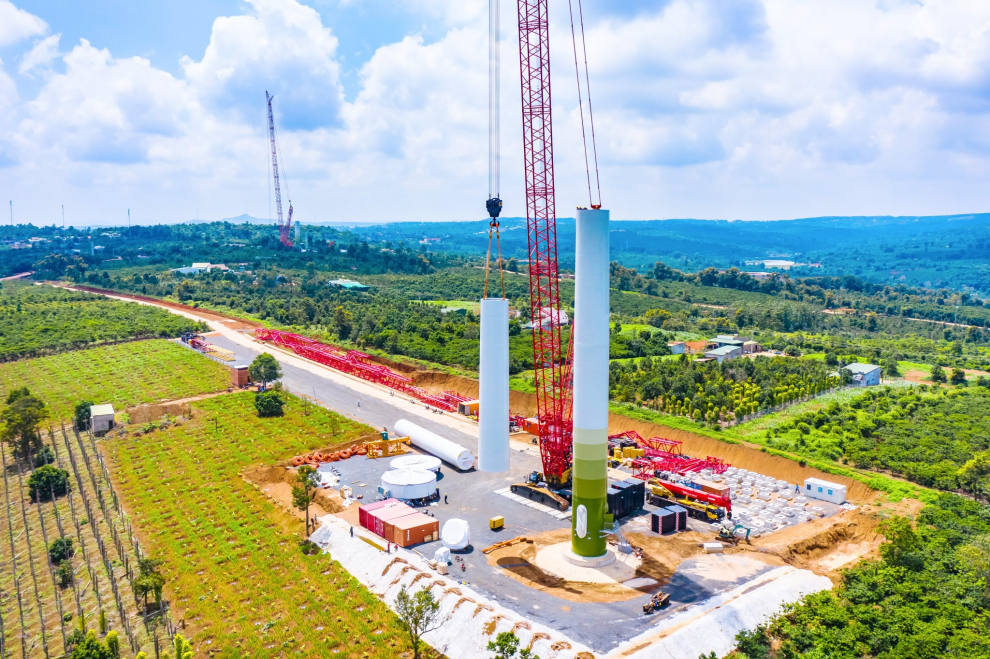 Ea Nam Wind Power Plant (Dak Lak) with a capacity of 400MW and a 500kV transformer station invested by Trung Nam Group with a total investment of nearly 16,500 billion VND. The project includes 84 wind turbines, spread over an area of 6,000 hectares of mountainous terrain, interspersed with specialized agricultural areas in Ea H'Leo district, Dak Lak province. The 500kV Ea Nam transformer station has a scale of 02 500kV transformers, a total capacity of 450MVA and 02 500kV transmission lines cutting in half the 500kV line circuit 1, connecting to the transmission lines of the 500kV Pleiku transformer station and the 500kV Di Linh transformer station.
