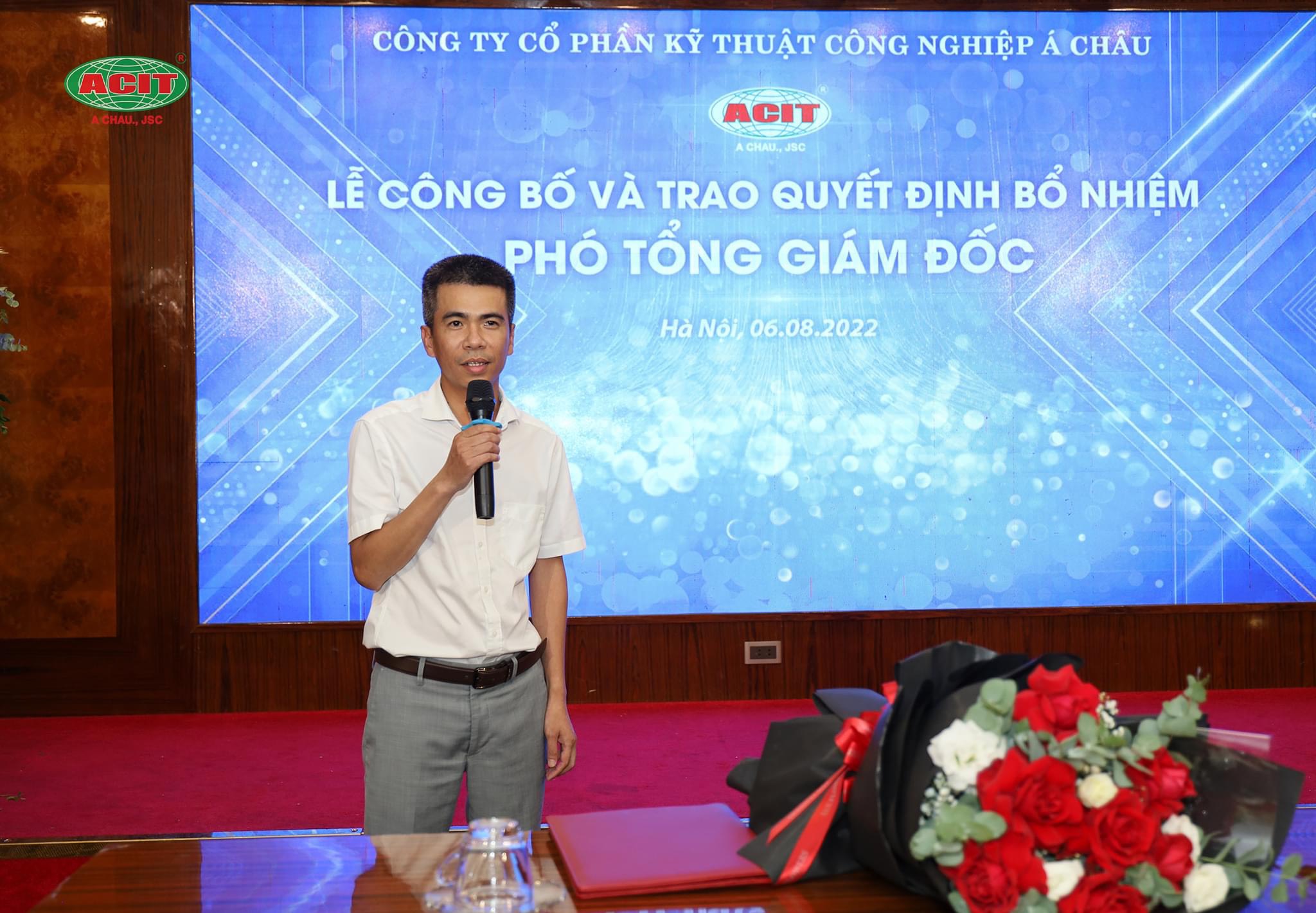 Phát biểu nhận nhiệm vụ, Phó TGĐ Đoàn Kỳ Bá bày tỏ sự cảm ơn sâu sắc tới Chủ tịch HĐQT kiêm TGĐ Phạm Đình Thắng đã tin tưởng và cam kết trên cương vị mới sẽ tiếp tục nỗ lực, sát cánh cùng Ban lãnh đạo ACIT để điều hành công ty phát triển hiệu quả và bền vững. Đặc biệt, ông Đoàn Kỳ Bá nhấn mạnh sẽ cống hiến hết sức để Khối Sản xuất của công ty tạo thêm được nhiều dấu ấn trên quá trình phát triển tiếp theo, đặc biệt là khi Nhà máy Hòa Lạc 2 – nhà máy thứ 6 của công ty đang dần được hoàn thiện.